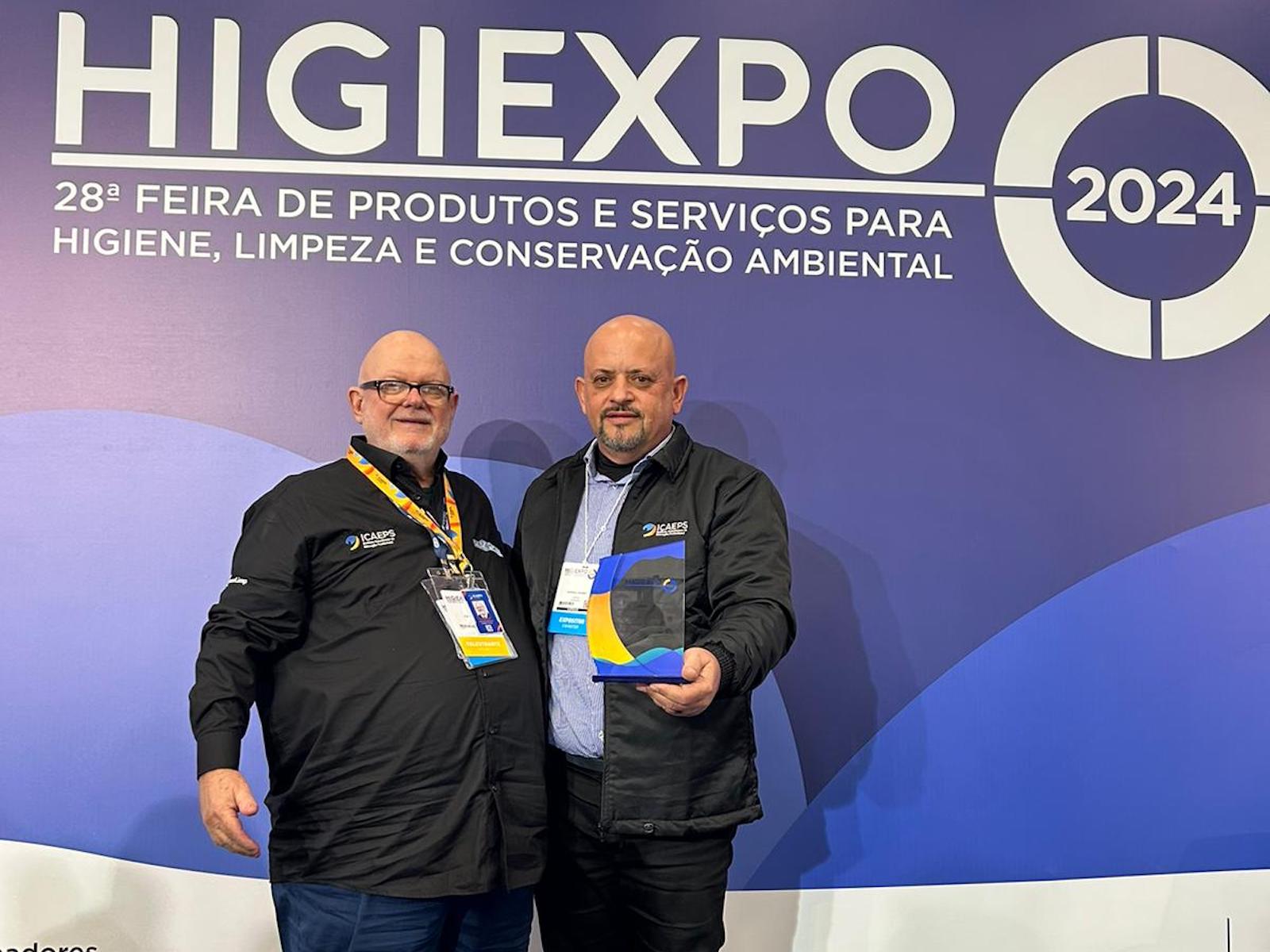 Logo na manhã desta terça-feira, o ICAEPS foi um dos homenageados pela Abralimp durante a abertura oficial da Feira. Os expositores receberam uma placa de agradecimento pela participação. O presidente do Instituto e o assessor técnico Osmar Viviani foram os responsáveis por receber a honraria no palco central.